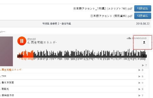<악센트 노트> 등 일부 강의는 기본 학습자료와 함께 음성자료를 제공하고 있습니다.